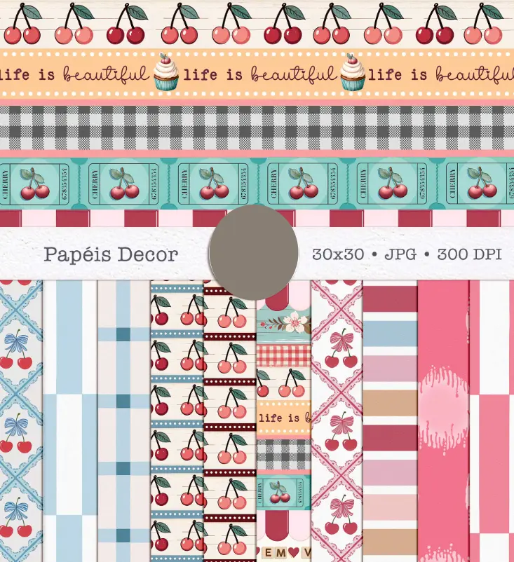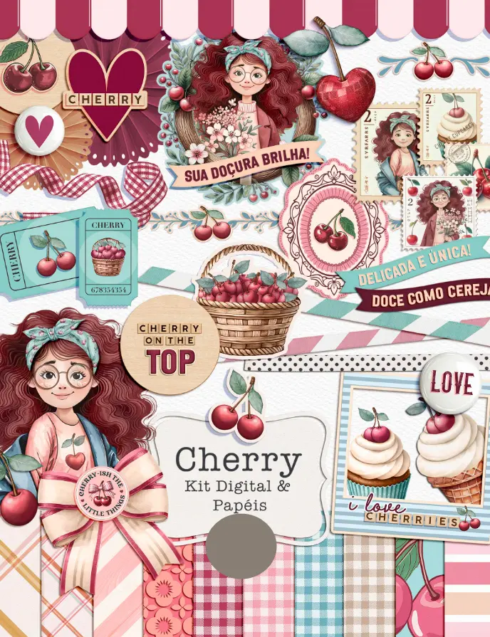 Explore as possibilidades infinitas do nosso Kit Digital Cherry Cerejas, perfeito para dar um toque único e especial aos seus projetos. Este kit é composto por vasta gama de materiais de alta qualidade que certamente enriquecerão seus trabalhos criativos.