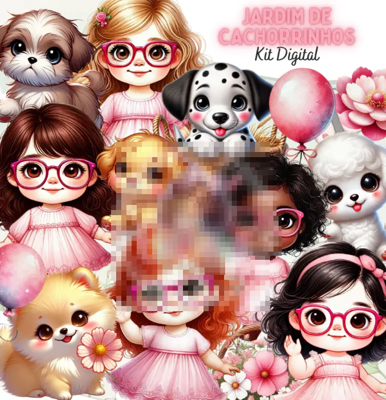 Transforme seus projetos com o Kit Jardim de Cachorrinhos 3D! Com ilustrações encantadoras e variadas, este conjunto oferece elementos versáteis para suas criações.